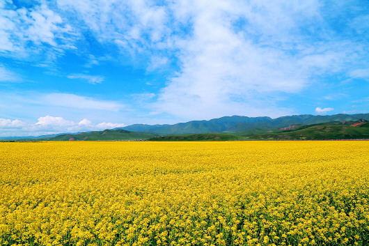 今年全州启动了从土门关至郎木寺、合作至岷县西寨、郎木寺至两河口3条绿色旅游长廊沿线及周边乡镇的“万亩油菜花观赏带”建设,连片播种油菜近6万亩。7月,各地油菜花竞相开放,金黄色的花海与蓝天白云和绿色的草原共同构成一幅专属甘南的特色名片。