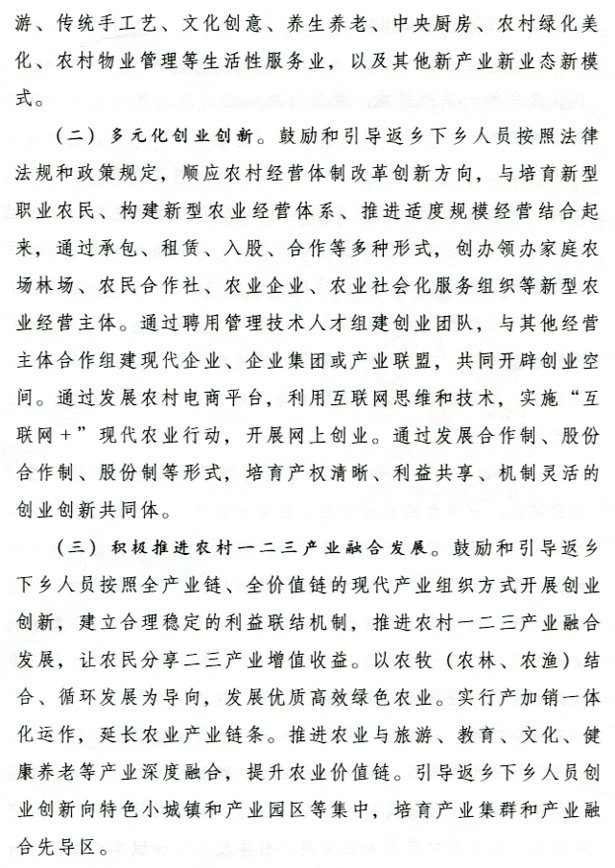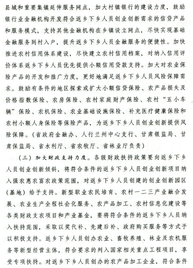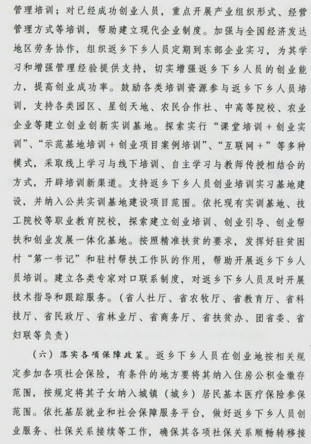 转发省政府办公厅关于支持返乡下乡人员